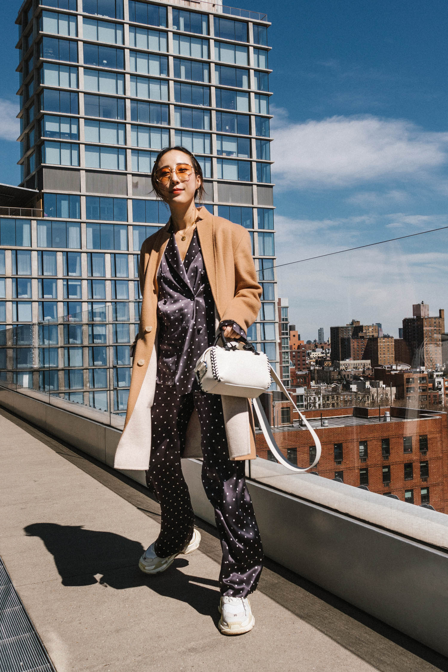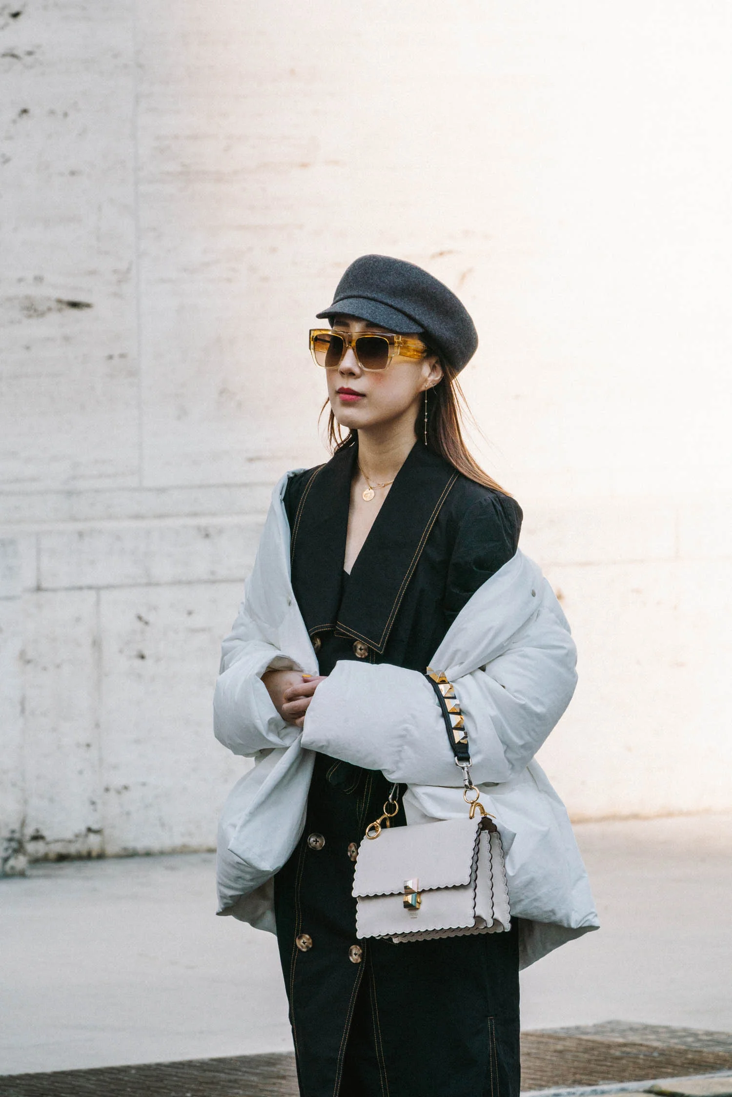 Kuho Coat, Isabel Marant Sweater, Petite Studio Pants, The Row Boots, Fendi Bag, Celine Sunglassses, Simone Rocha Hair Clip