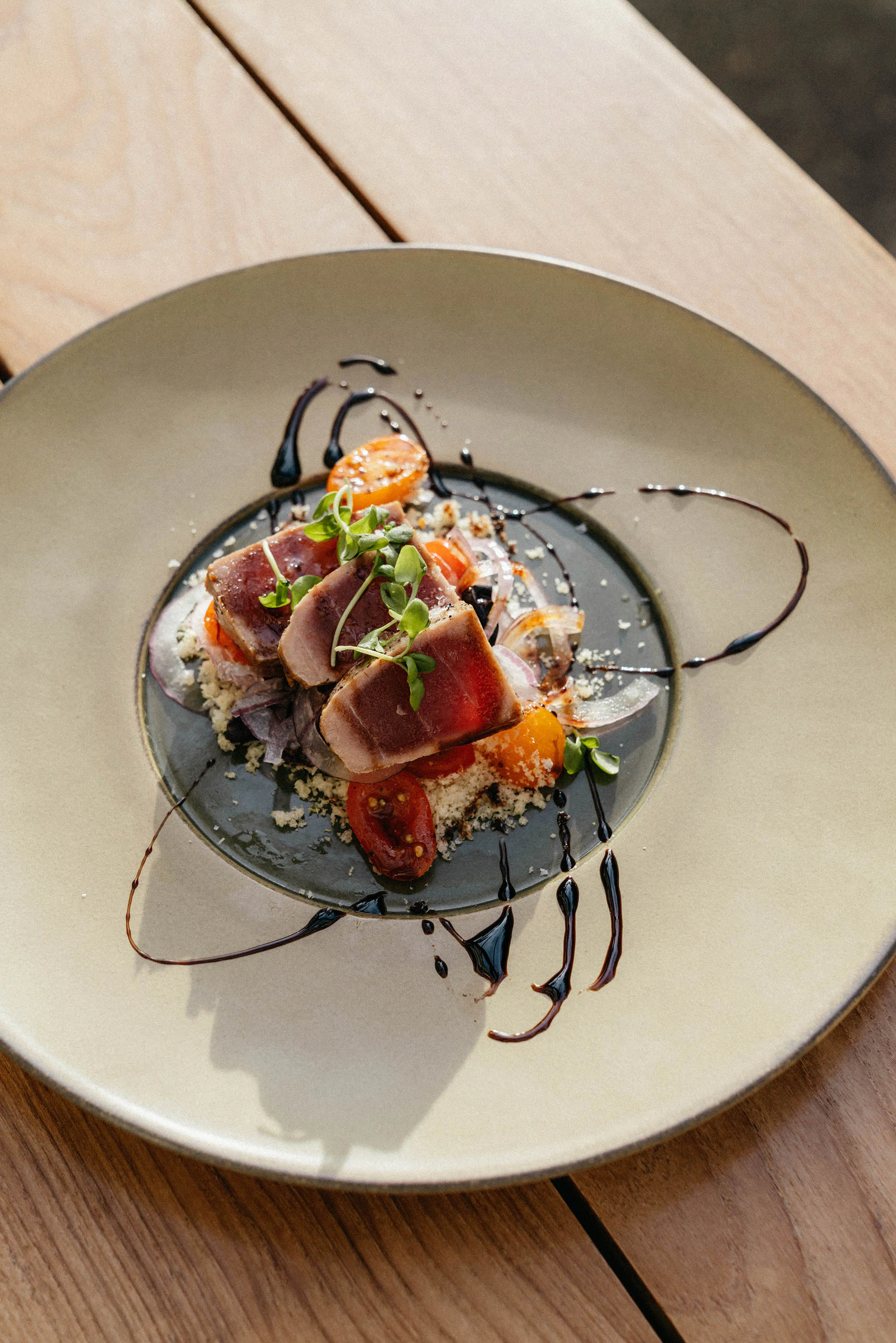 Beef filet w/ radicchio, mushroom, watercress, balsamic