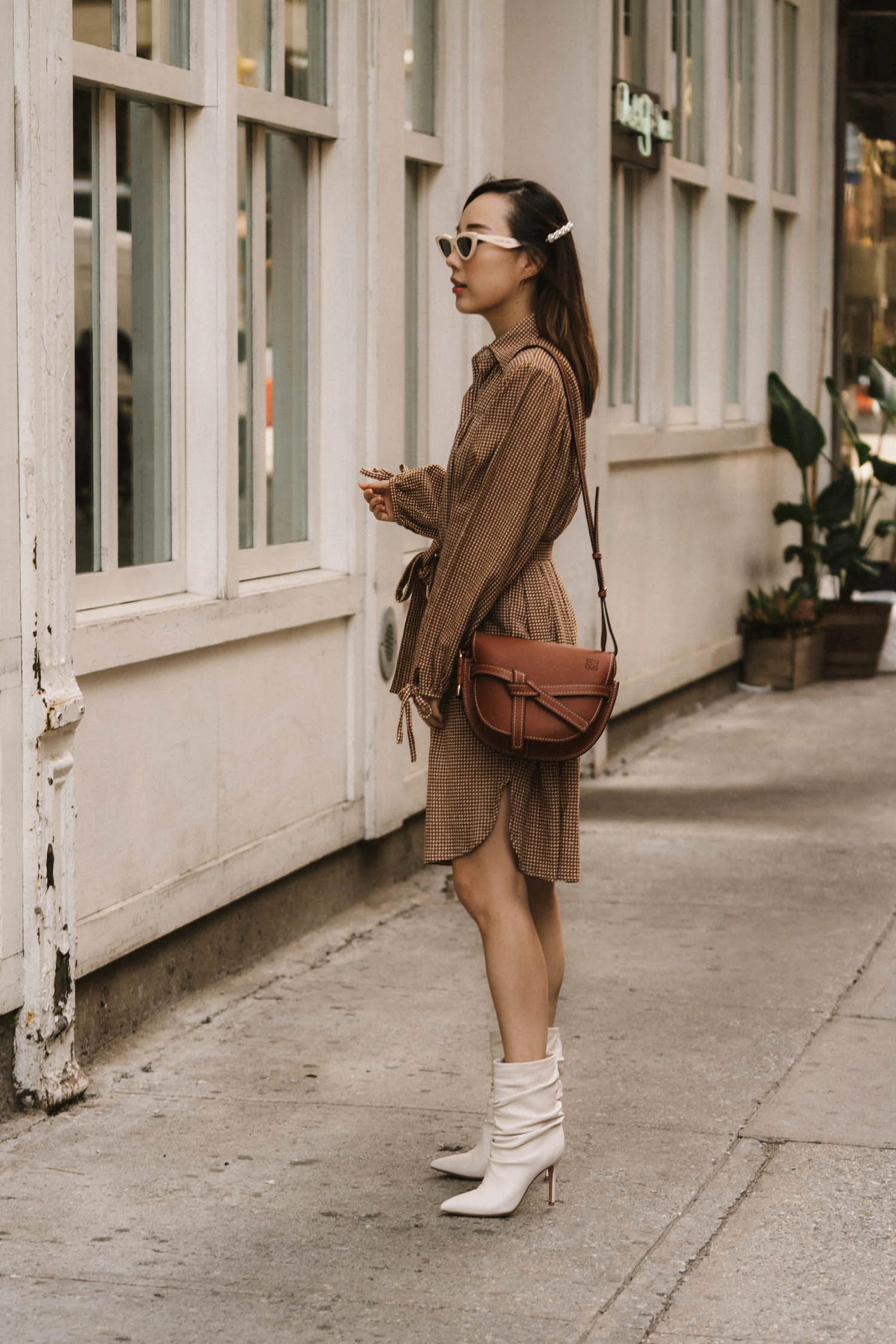 Rue Stiic Dress, Loewe Bag, Gianvito Rossi Boots, Celine Sunglasses, Simone Rocha Hair Clip