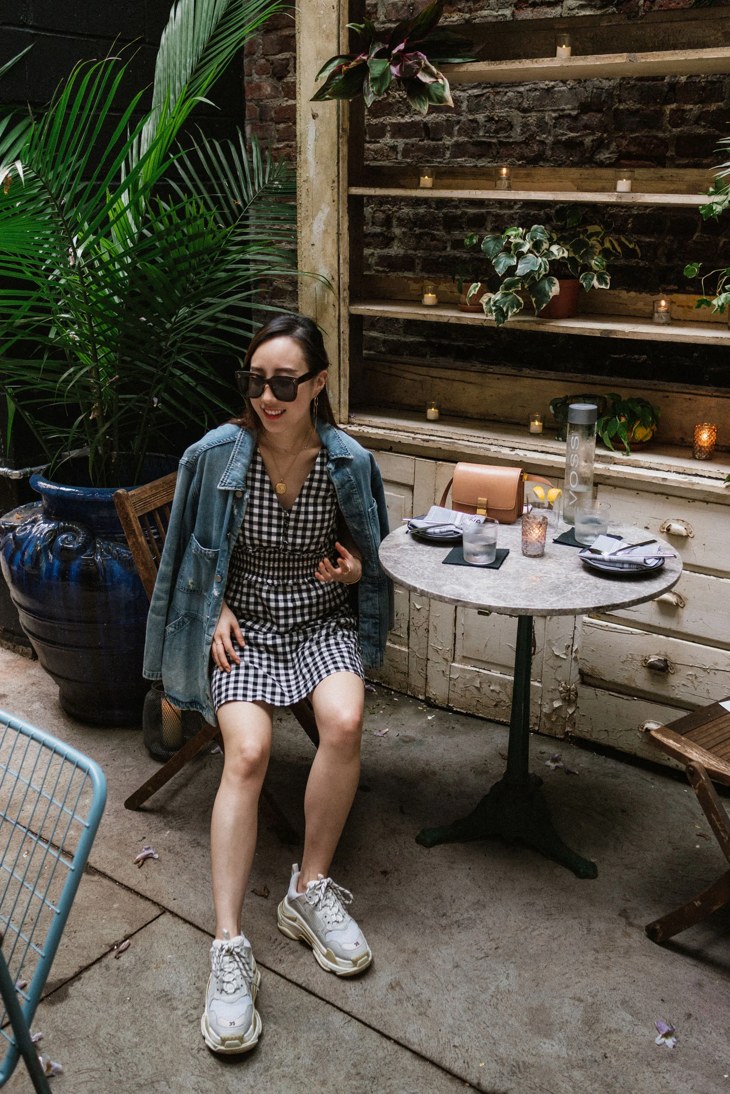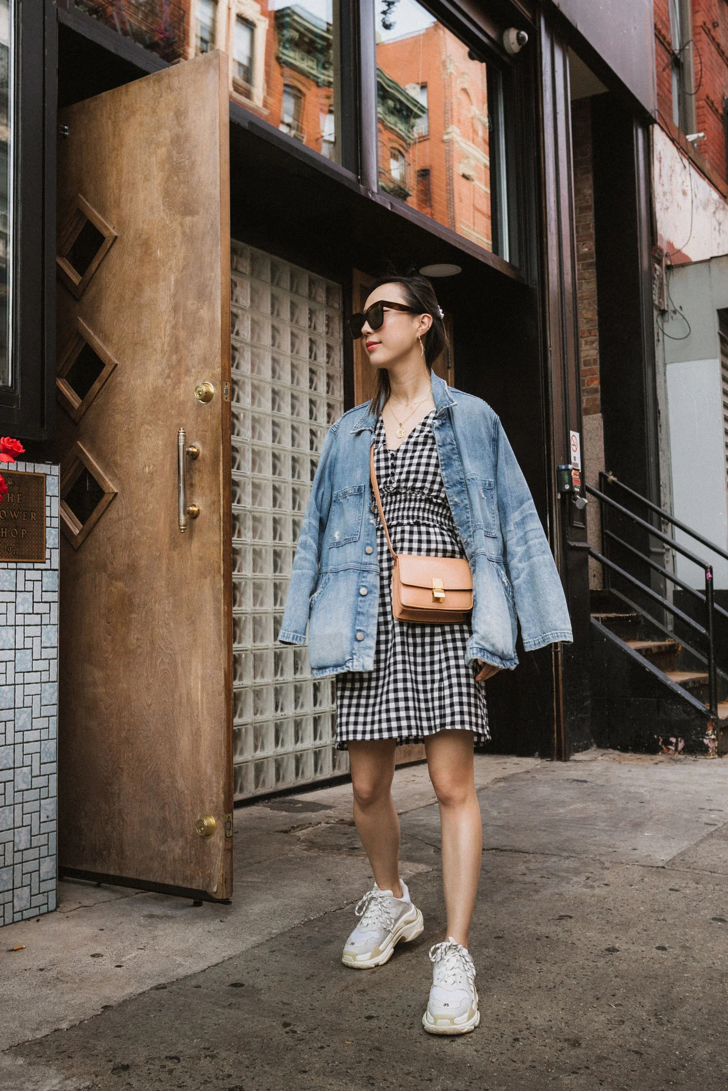 Sézane Dress, Céline Bag, Balenciaga Sneakers, Celine Sunglasses