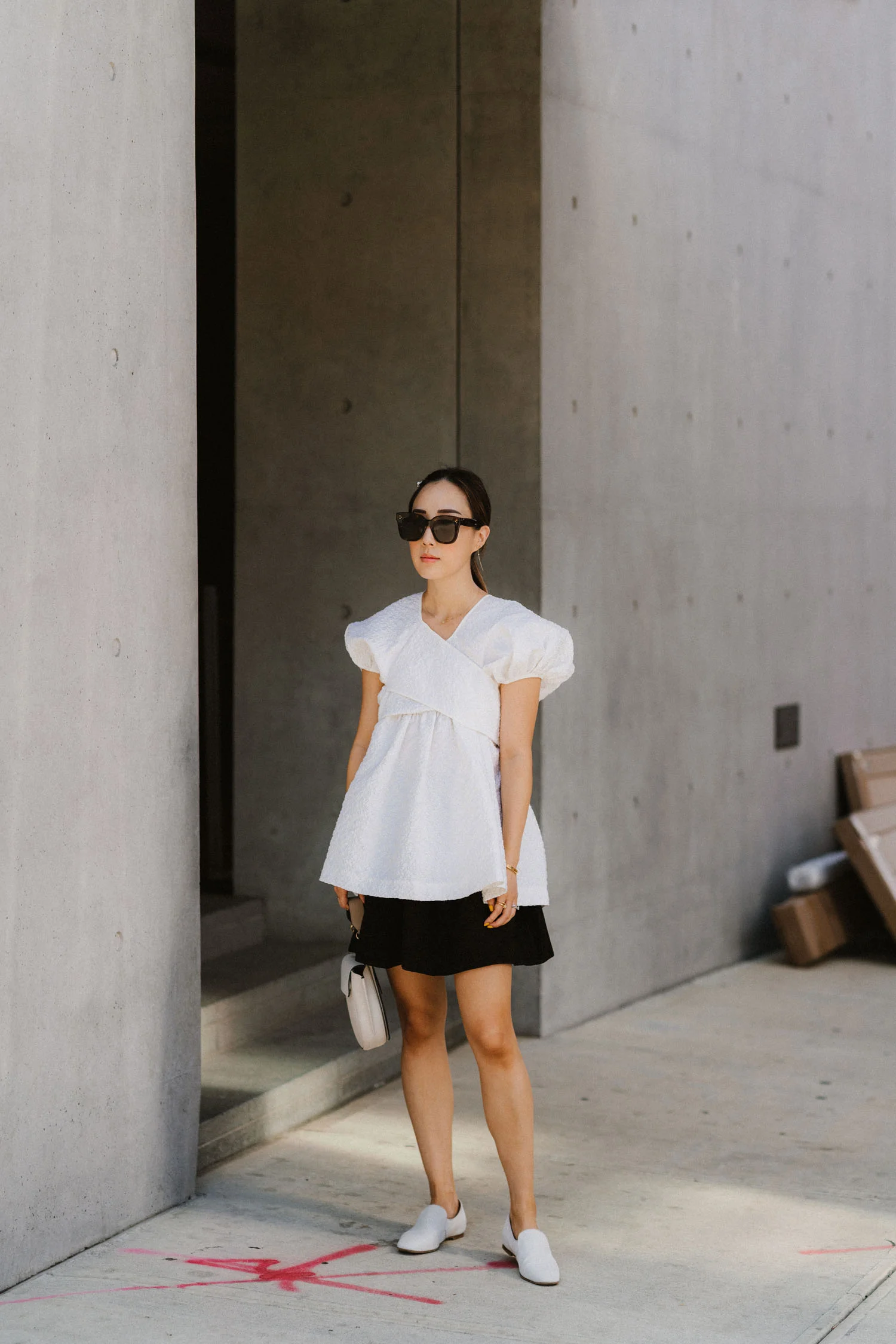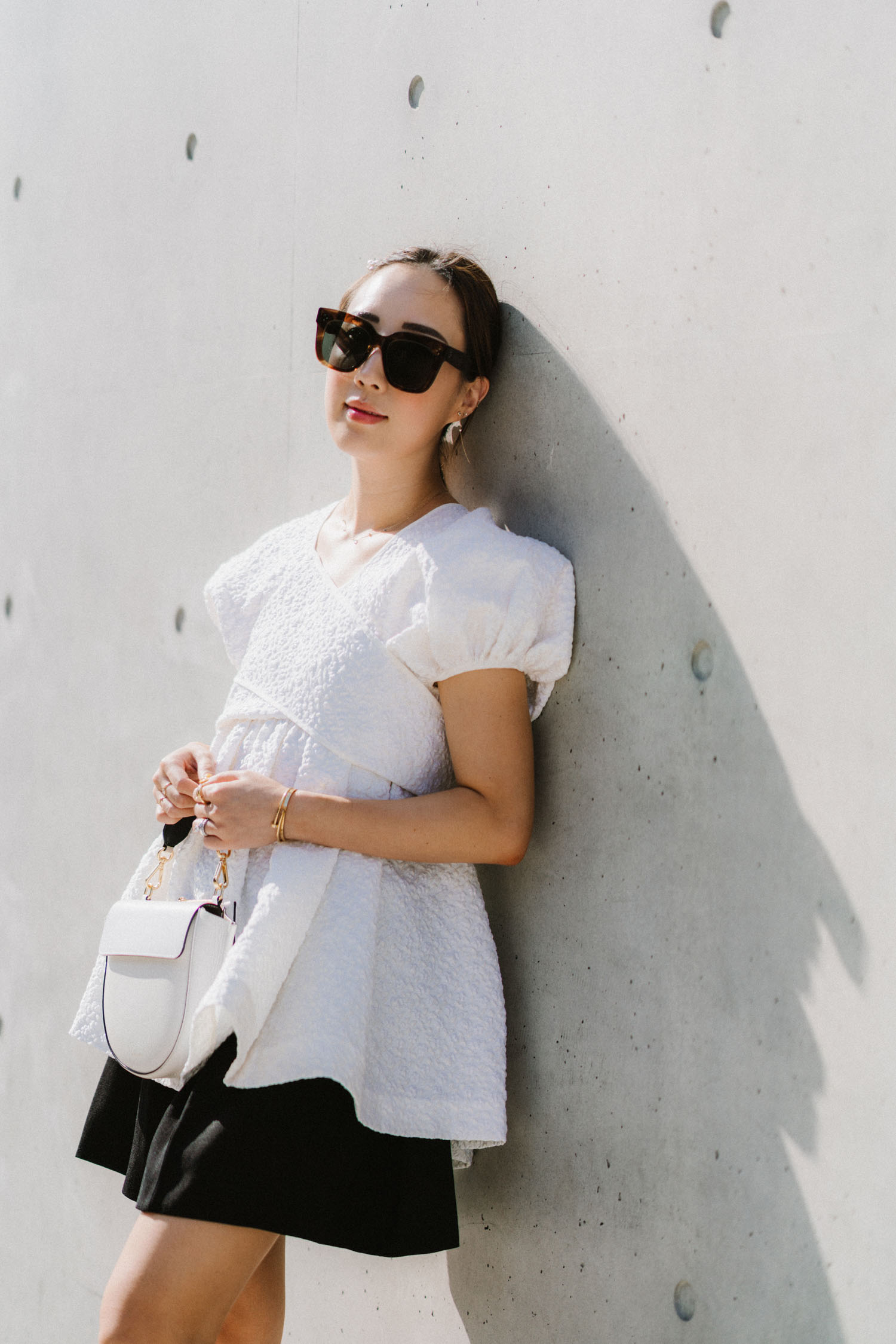 Tara Jarmon Top, RSVP Bag, CHANEL Shoes, Celine Sunglasses