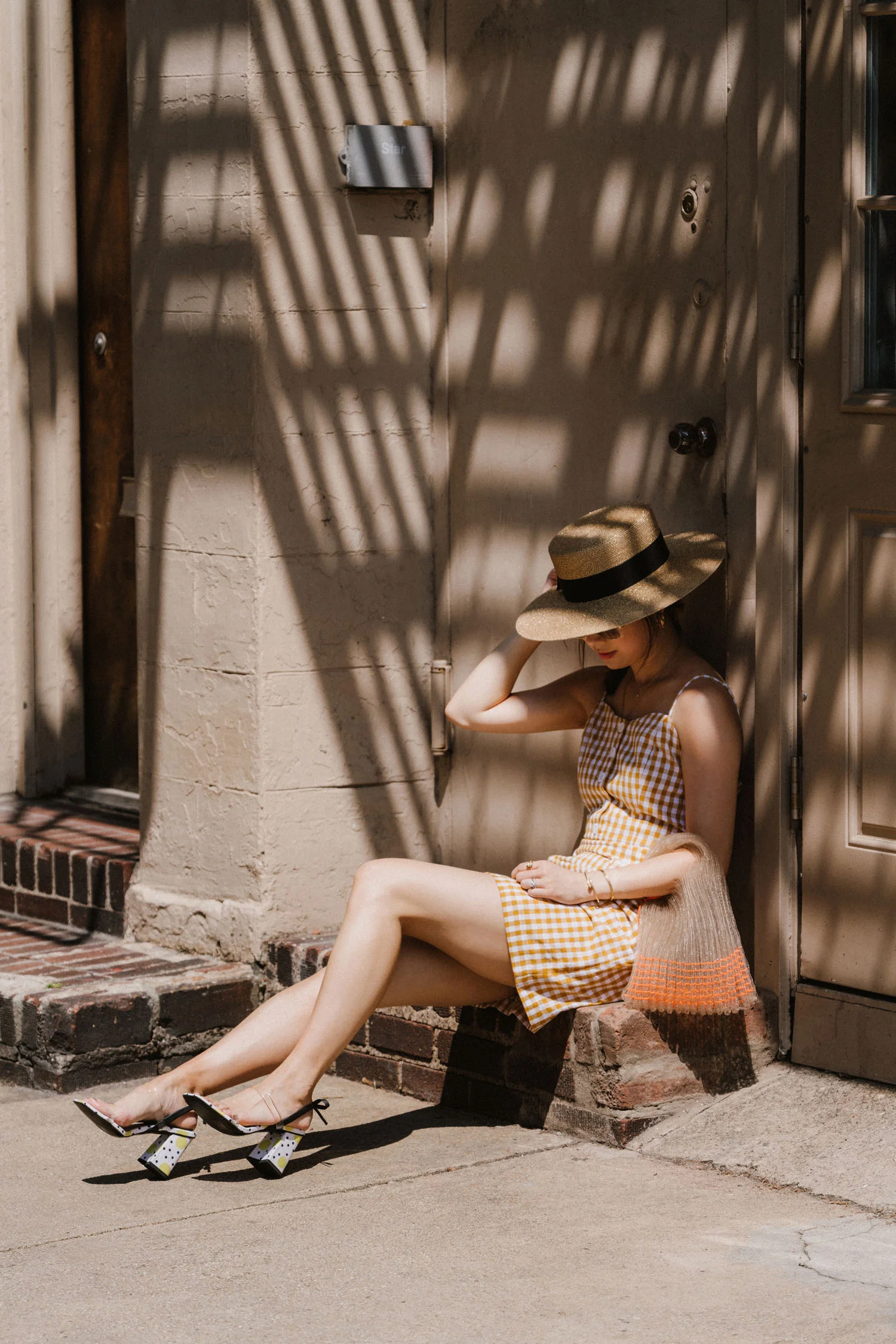 Doen Dress, CO Bag, Gucci Sunglasses, Janessa Leone Hat