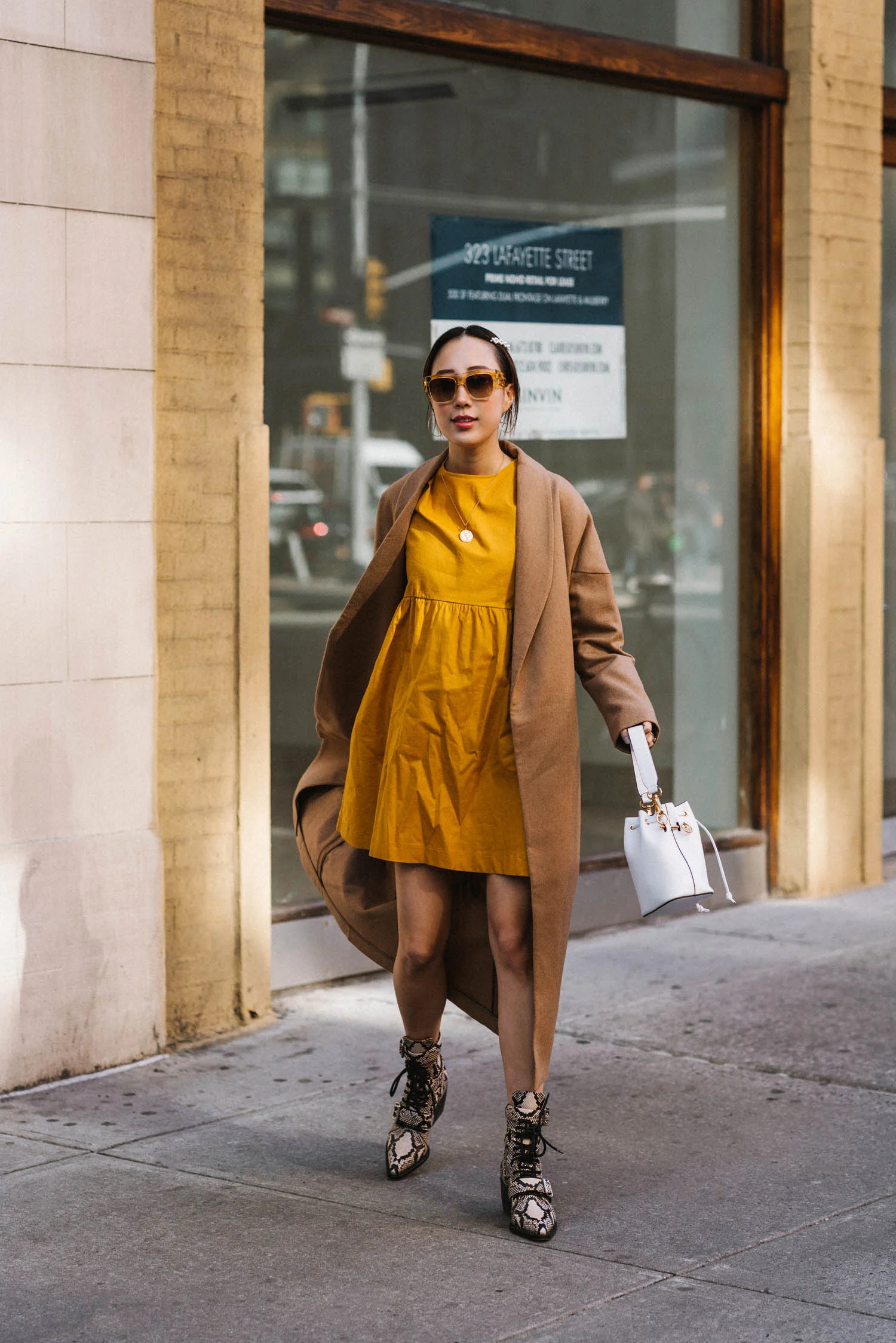 The Row Jacket, Tara Jarmon Dress, Dear Frances Shoes, Nico Giani Bag, Celine Sunglasses, Azlee Necklace