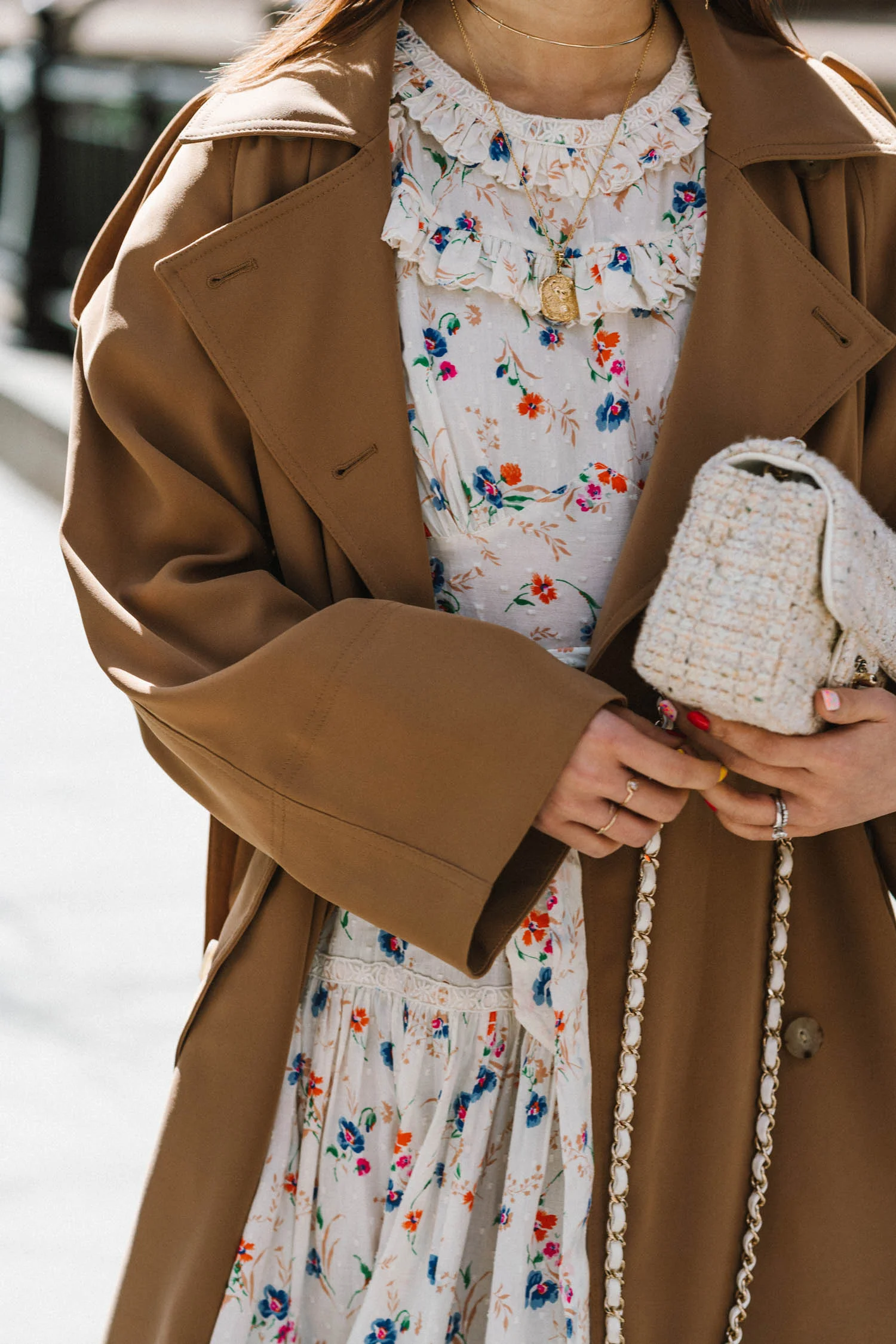 Aritzia Jacket, Doen Dress, CHANEL Shoes, CHANEL Bag, Azlee Necklace, WWAKE Necklace, Hirotaka Earrings