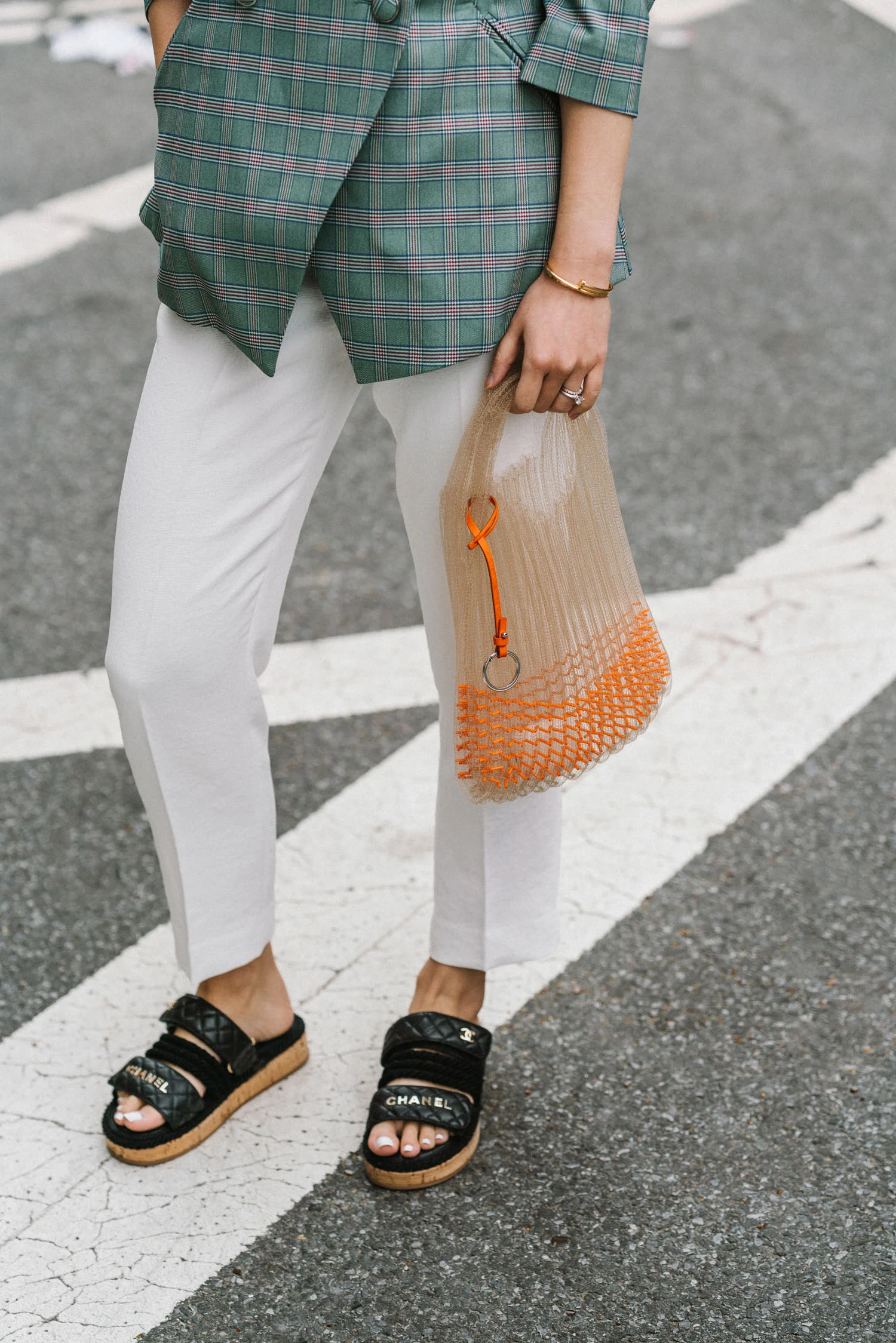 LIE Collection Blazer, Sézane Pants, CHANEL Sandals, Jil Sander Bag, Céline Sunglasses