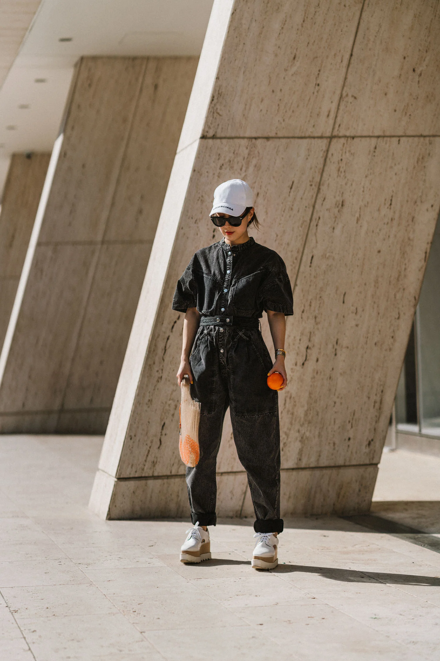 Isabel Marant Jumpsuit, Stella McCartney Shoes, Jil Sander Bag, Balenciaga Hat