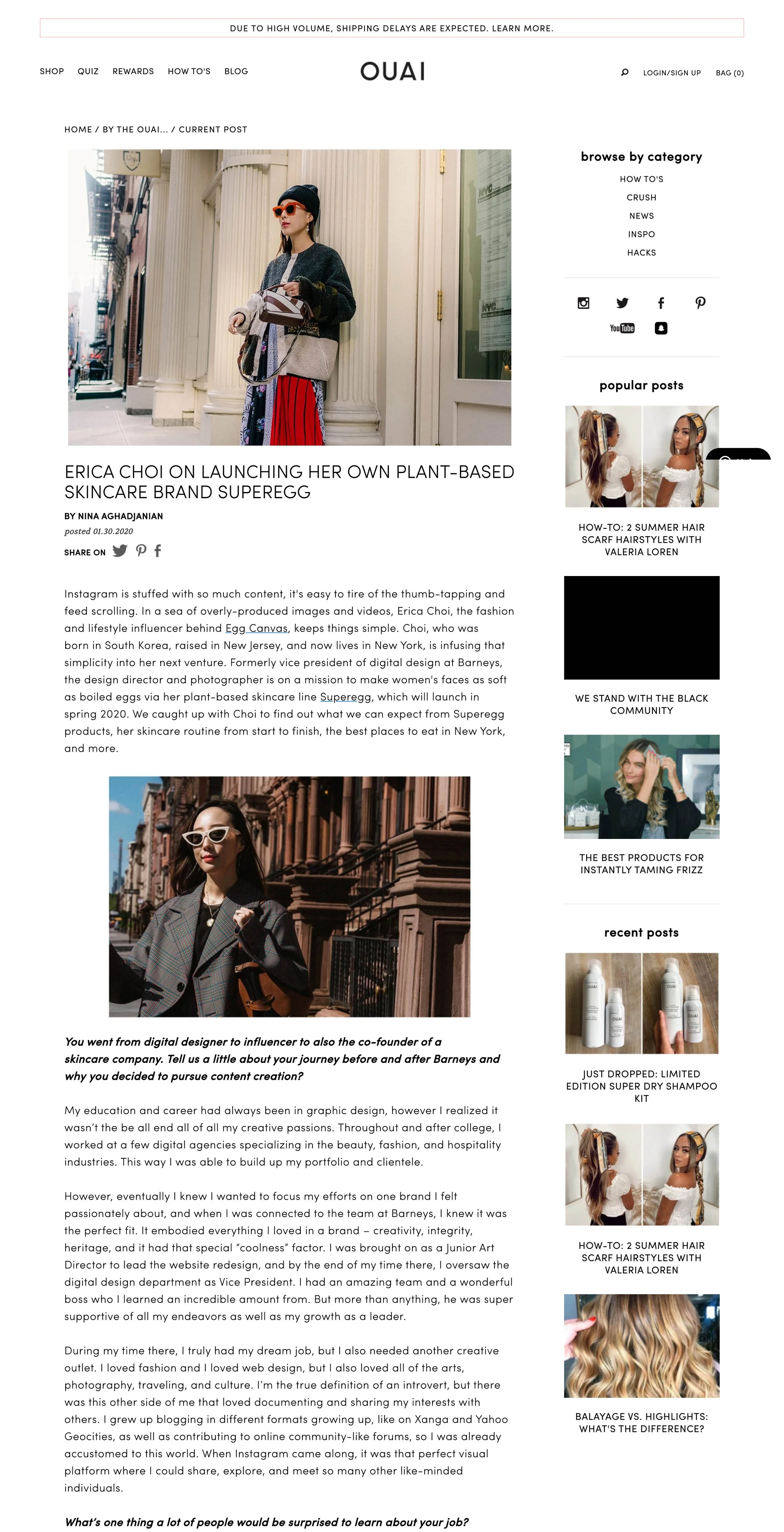 OUAI OUAI – Erica Choi On Launching Her Own Plant-Based Skincare Brand SUPEREGG NewsErica ChoiJanuary 30, 2020 Facebook0 Twitter LinkedIn0 Tumblr Pinterest0
