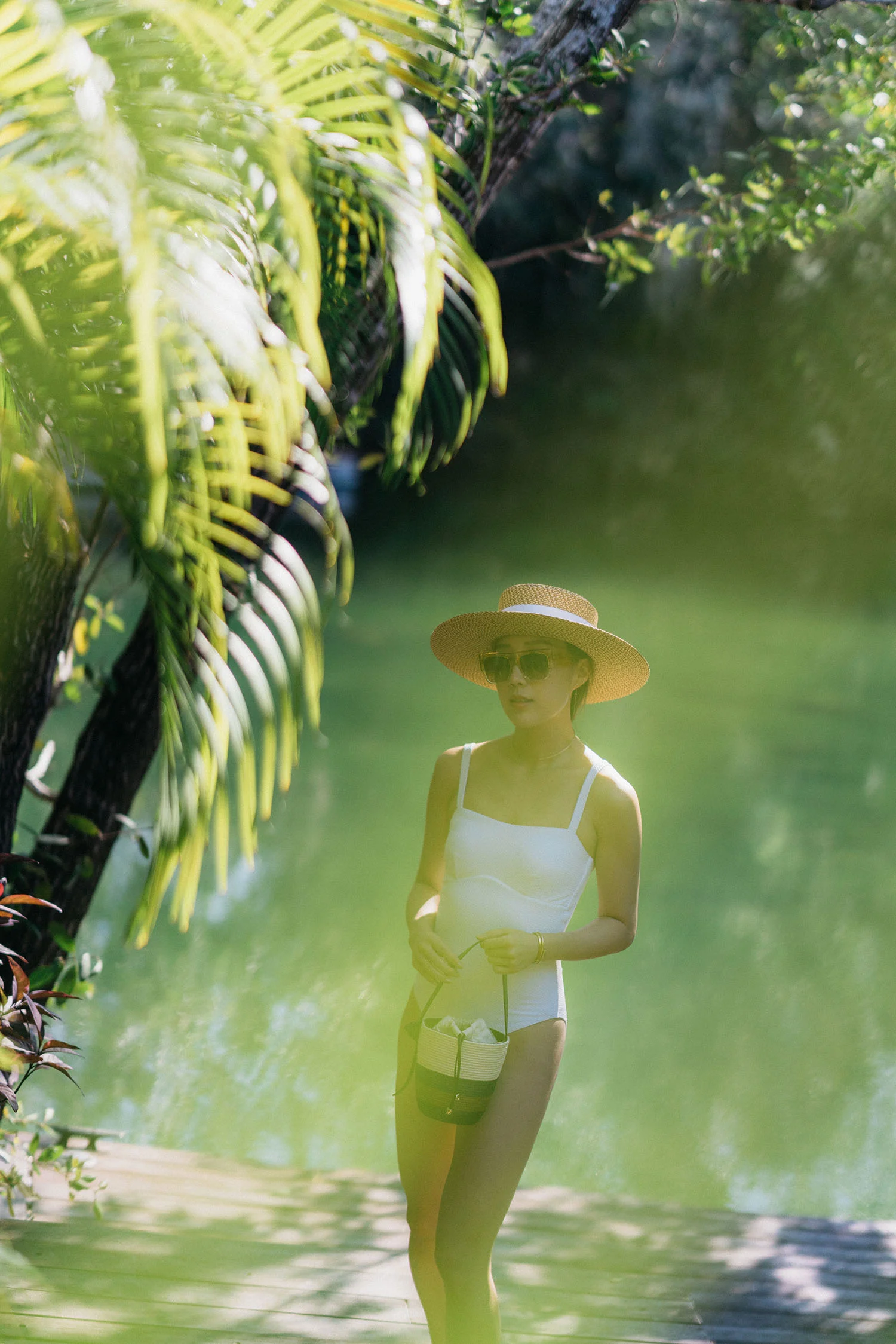 Lisa Marie Fernandez Swimsuit, Philosophy di Lorenzo Serafini Skirt, Bembien Bag, Converse Tokyo Hat, Celine Sunglasses