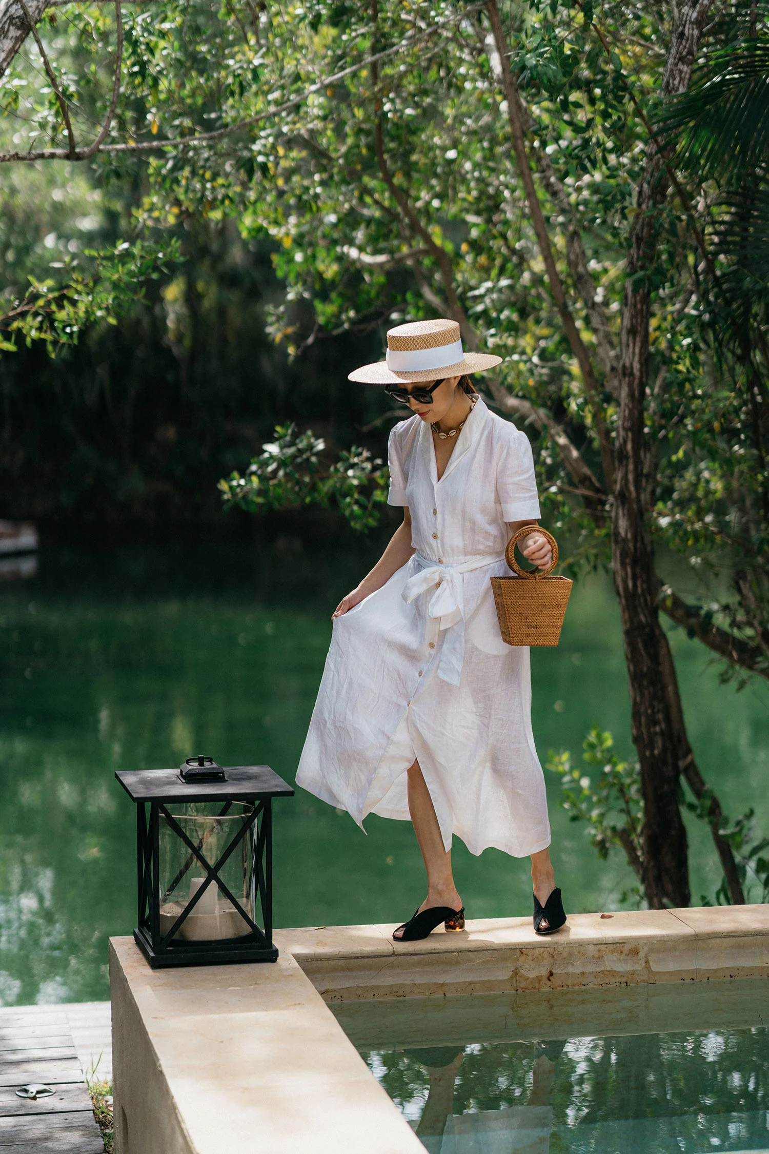 Bikes to ride around the property – en route to dinner! Wearing Natalie Martin Dress, Chloé Sneakers, Eric Javits Hat