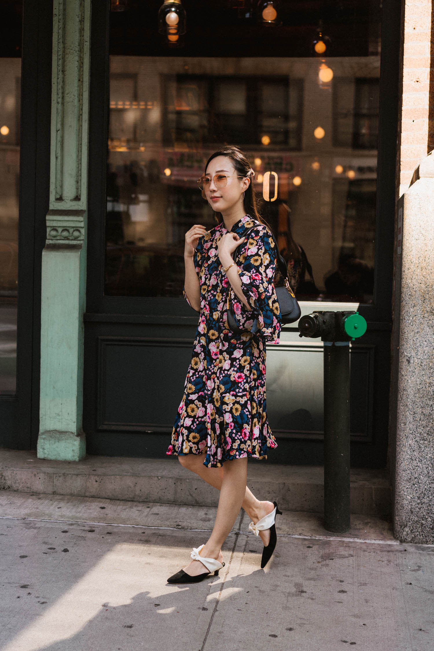 Sézane Dress, Céline Bag, Balenciaga Sneakers, Celine Sunglasses